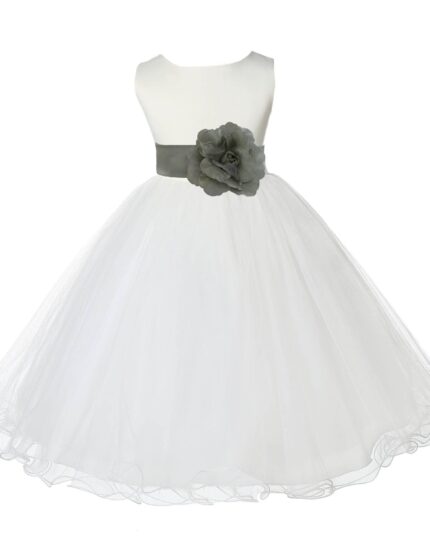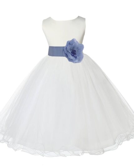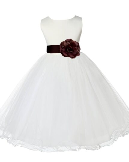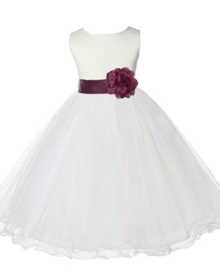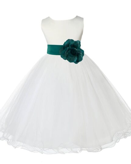 Ivory Formal Wedding Pageant Special Occasions Rattail Edge Tulle Flower Girl Dress 829T(4)