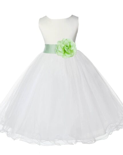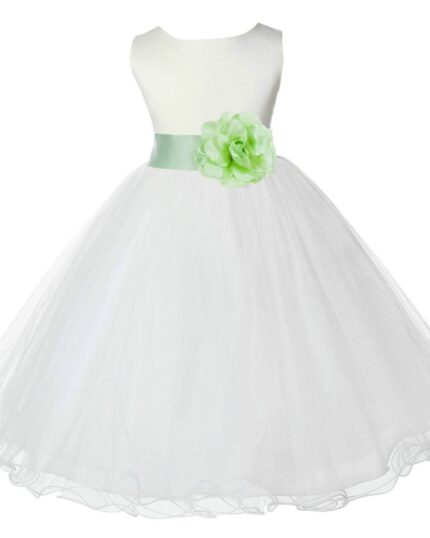 Ivory Formal Wedding Pageant Special Occasions Rattail Edge Tulle Flower Girl Dress 829T(1)