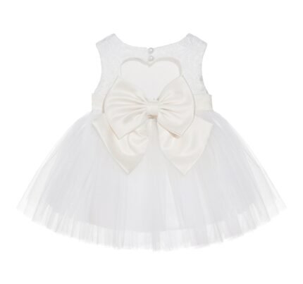 Ivory Lace Heart Cutout Junior Flower Girl Dress Mini Bride Wedding Reception Communion Baptism BB1