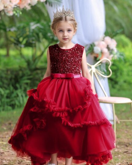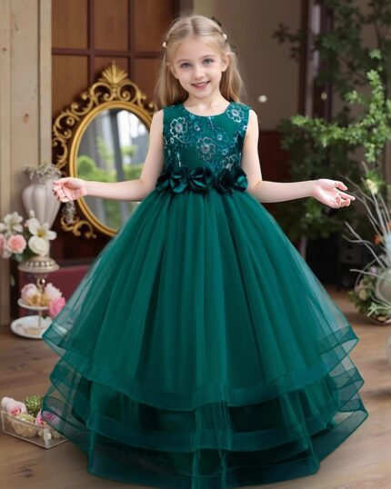Girls’ Flower Mesh Fluffy Dress – Christmas Performance