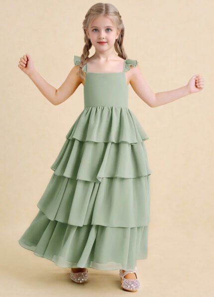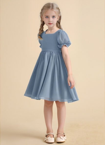 Jirocum Boba Flower Girl Dresses A-Line Square Neckline Chiffon Dress