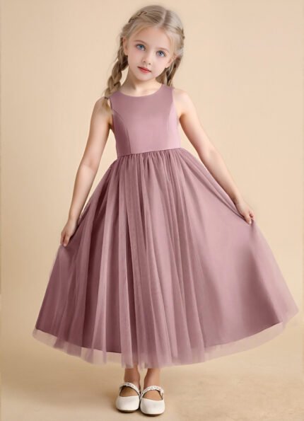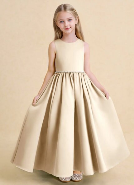 Jirocum Cricket Flower Girl Dresses Ball-Gown Pleated Matte Satin Dress