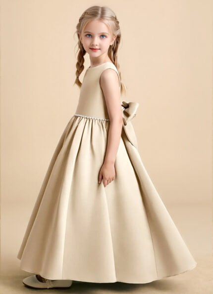 Jirocum Daisies Flower Girl Dresses Ball-Gown Bow Matte Satin Dress