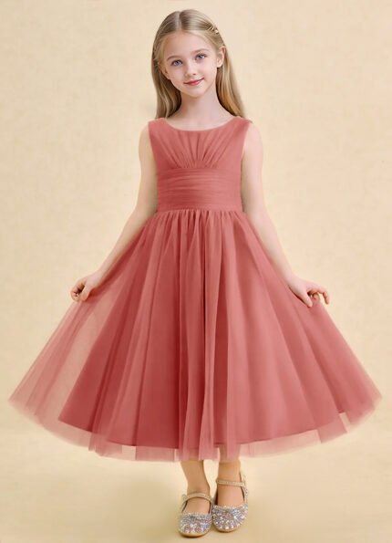 Jirocum Macaron Flower Girl Dresses A-Line Pleated Tulle Dress