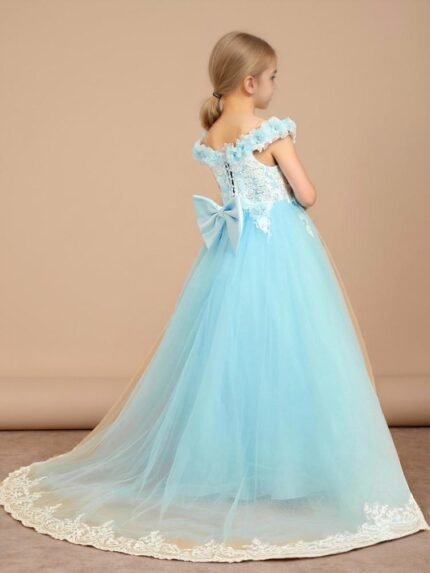 Adorable Flower Girl Dresses with Bowknots and Lace Applique