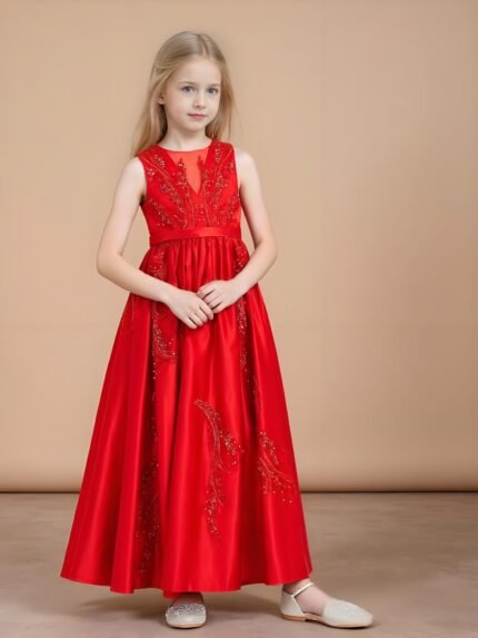 Sleeveless Beaded Satin Floor-length Flower Girl Dress