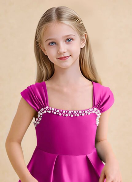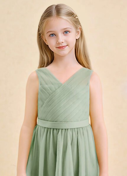 Jirocum Acorn Flower Girl Dresses -Line Pleated Matte Satin Dress