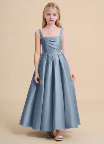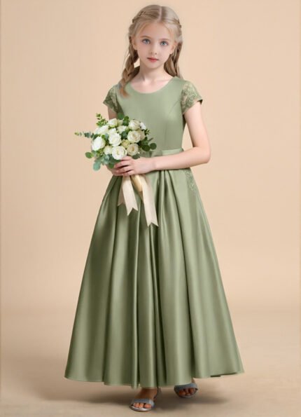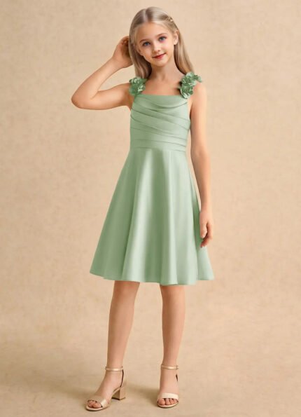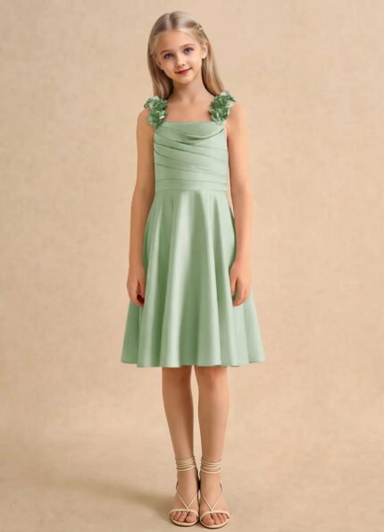 Jirocum Resa Flower Girl Dresses A-Line Pleated Matte Satin Dress
