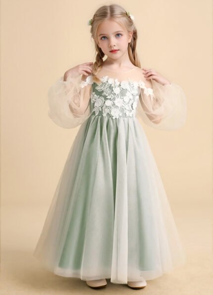 Jirocum Lilia Flower Girl Dresses A-Line with Sleeves Chiffon Dress