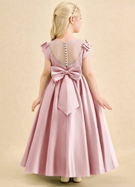 Jirocum Toffee Flower Girl Dresses Ball-Gown Bow Matte Satin Dress
