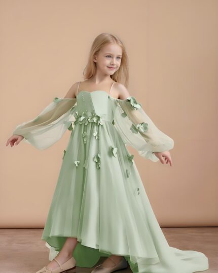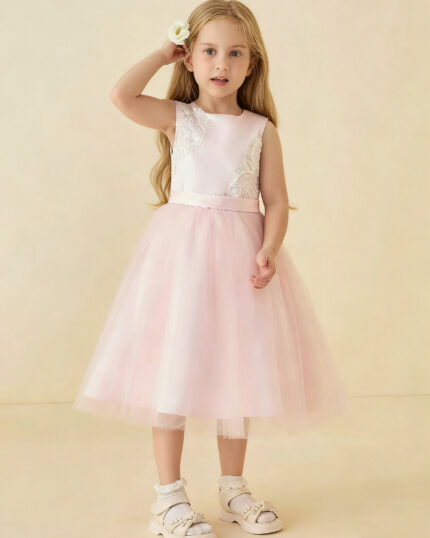 Lace Petal Fairy Illusion Neckline Flower Girl Dress