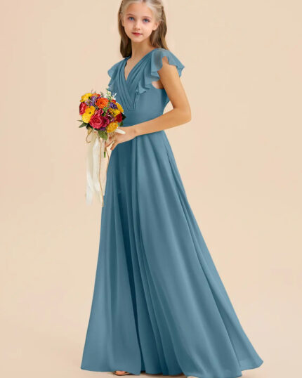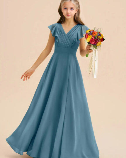 Jirocum Kaleigh Junior Bridesmaid Dresses A-Line Pleated Chiffon Dress
