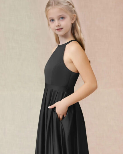 Jirocum Arianthe Junior Bridesmaid Dresses A-Line with Pockets Stretch Satin Dress