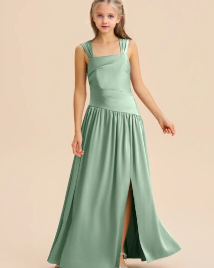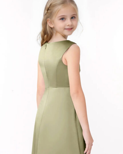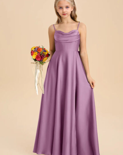 Jirocum Sadia Junior Bridesmaid Dresses A-Line Pleated Stretch Satin Dress