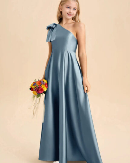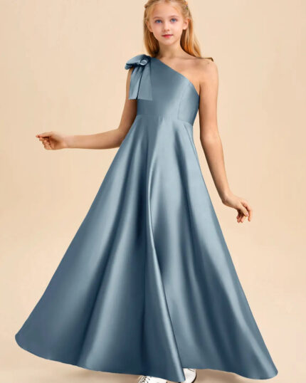 Jirocum Penguin Junior Bridesmaid Dresses A-Line Bow Stretch Satin Dress