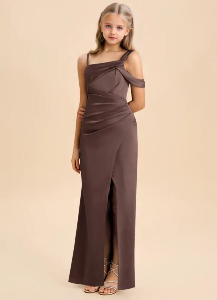 Jirocum Wynter Junior Bridesmaid Dresses Pleated Stretch Satin Dress