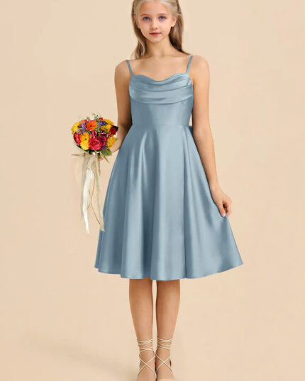 Jirocum Renna Junior Bridesmaid Dresses A-Line Pleated Stretch Satin Dress