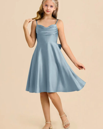 Jirocum Dotty Junior Bridesmaid Dresses A-Line Pleated Stretch Satin Dress