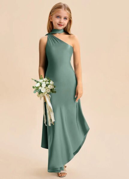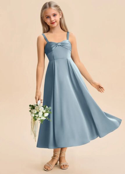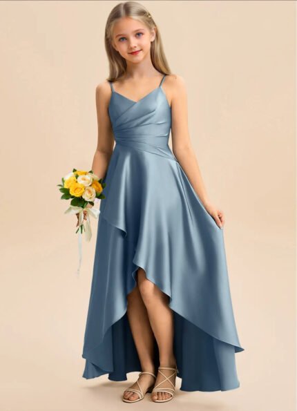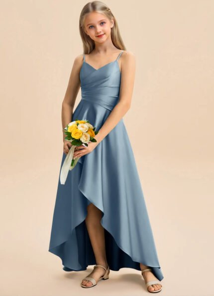 Jirocum Eirlys Junior Bridesmaid Dresses A-Line Pleated Stretch Satin Dress