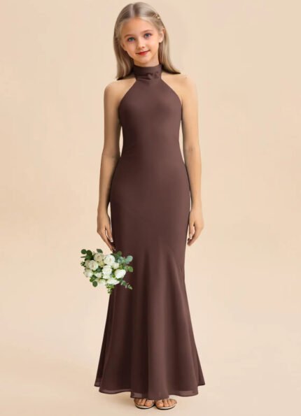 Jirocum Velli Junior Bridesmaid Dresses Mermaid High Neck Chiffon Dress