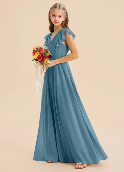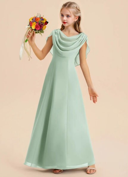 Jirocum Izzy Junior Bridesmaid Dresses A-Line Pleated Chiffon Dress