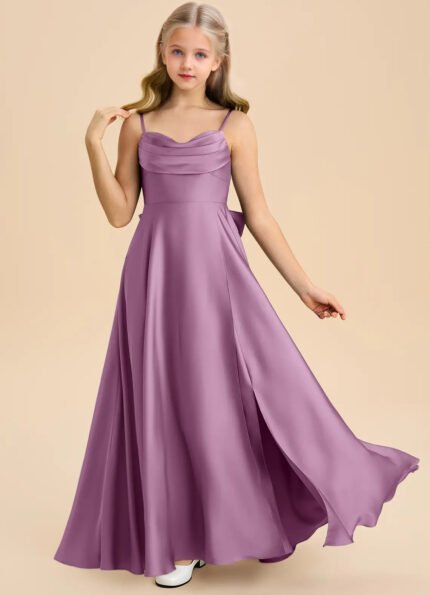 Jirocum Renna Junior Bridesmaid Dresses A-Line Pleated Stretch Satin Dress