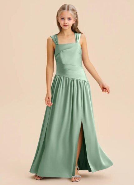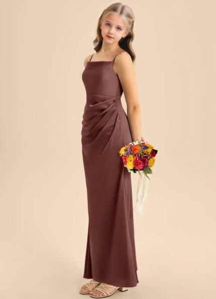 Jirocum Sadia Junior Bridesmaid Dresses A-Line Pleated Stretch Satin Dress