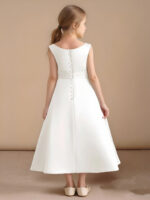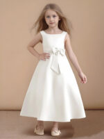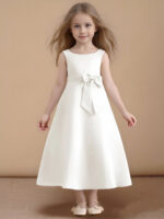 - If you are looking for a classic dress for your girl, look no further. Eve is our adorable satin A-Line dress. She features cap sleeves, buttons down her back, and a pleated waistband with an adorable bow.