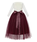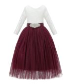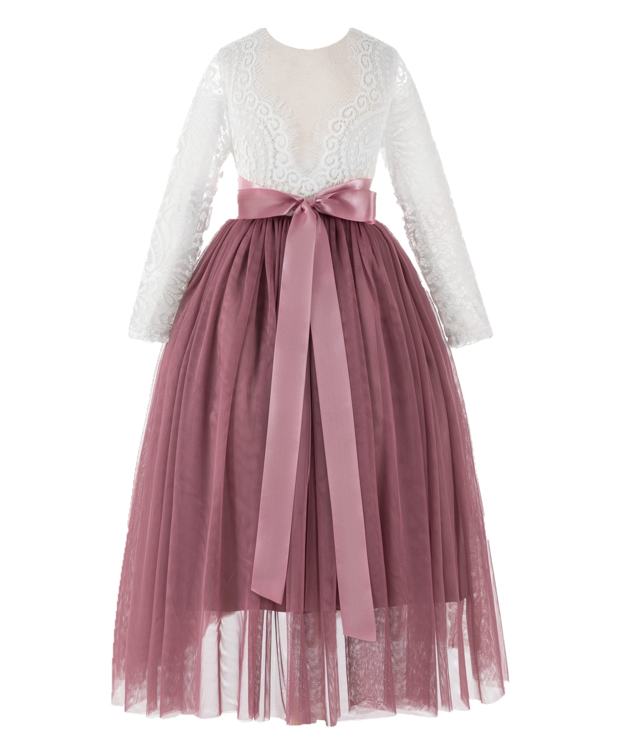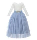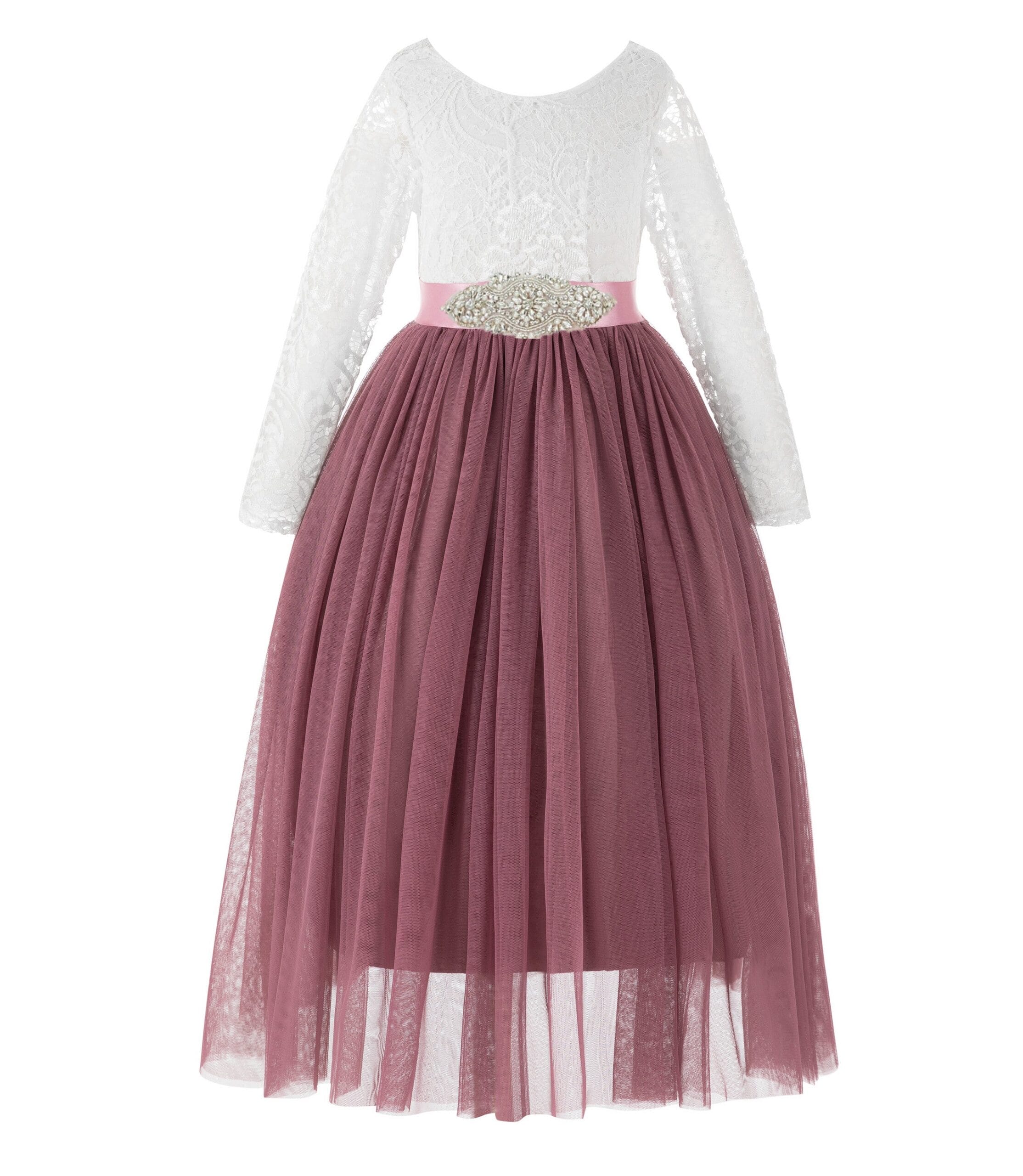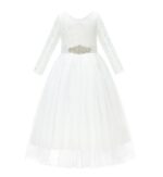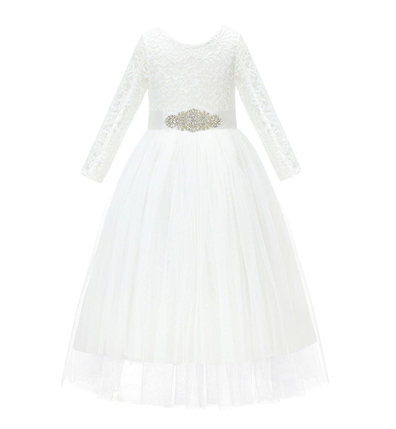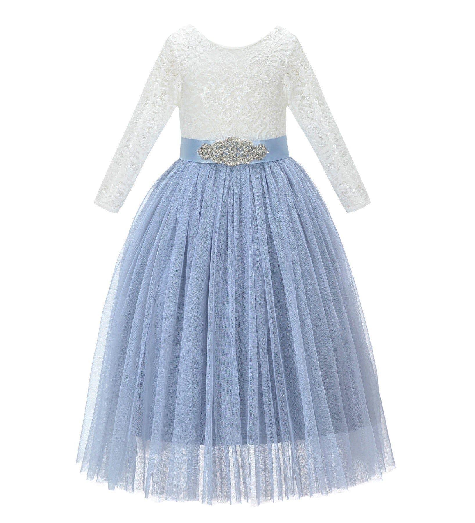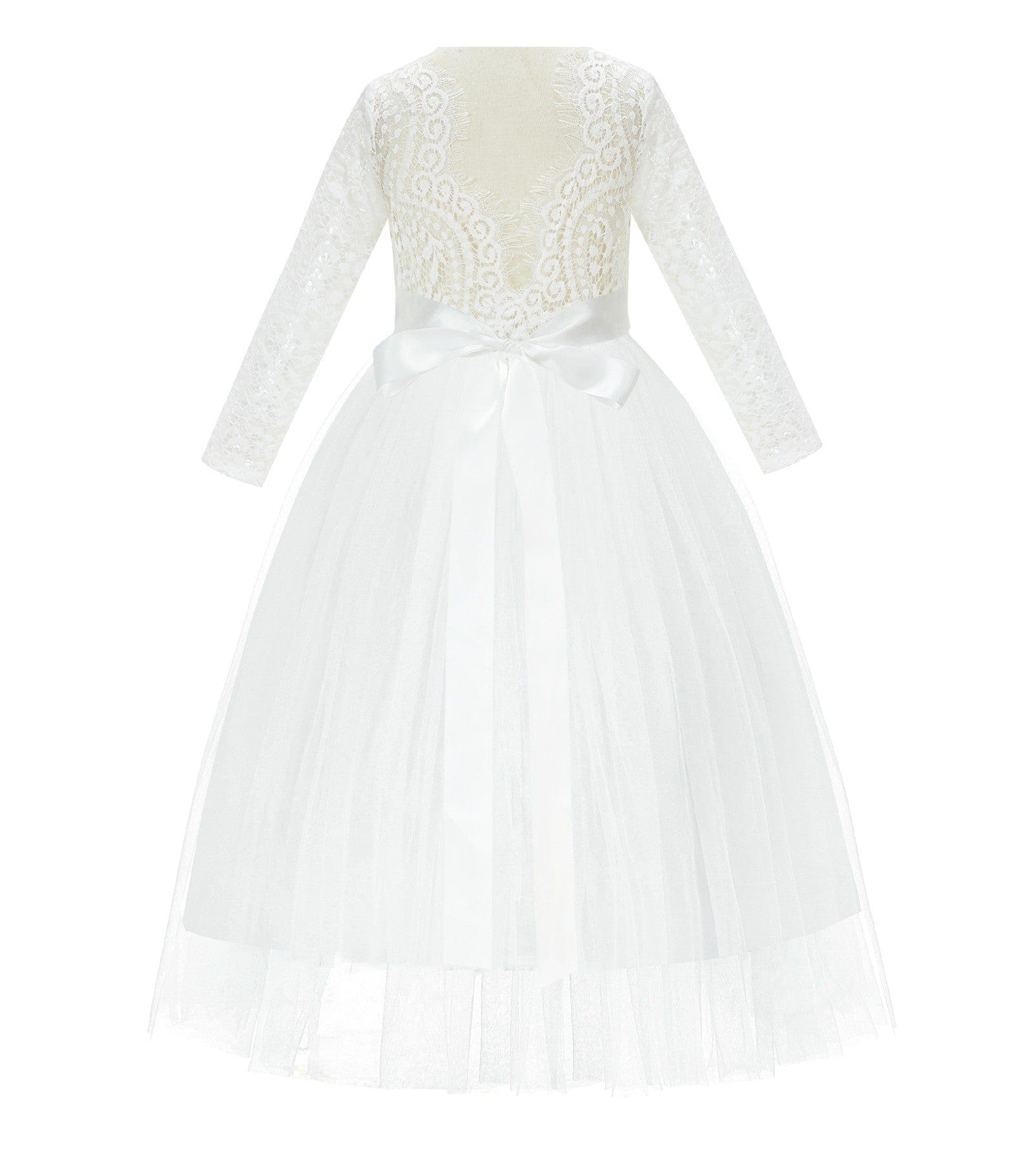 Line V-Back Lace Flower Girl Dress with Sleeves Formal Junior Princess Gown Special Occasion 290R3