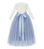 The elegant bodice features is made out of scalloped V-Back Lace top with cotton lining. The A line skirt has 3 layers, top 2 layers are made of soft tulle. 3rd is layer of satin lining to bring comfort to your little girl while wearing the dress. The waistline is delicately decorated with a rhinestone ribbon sash to make this dress more elegant.