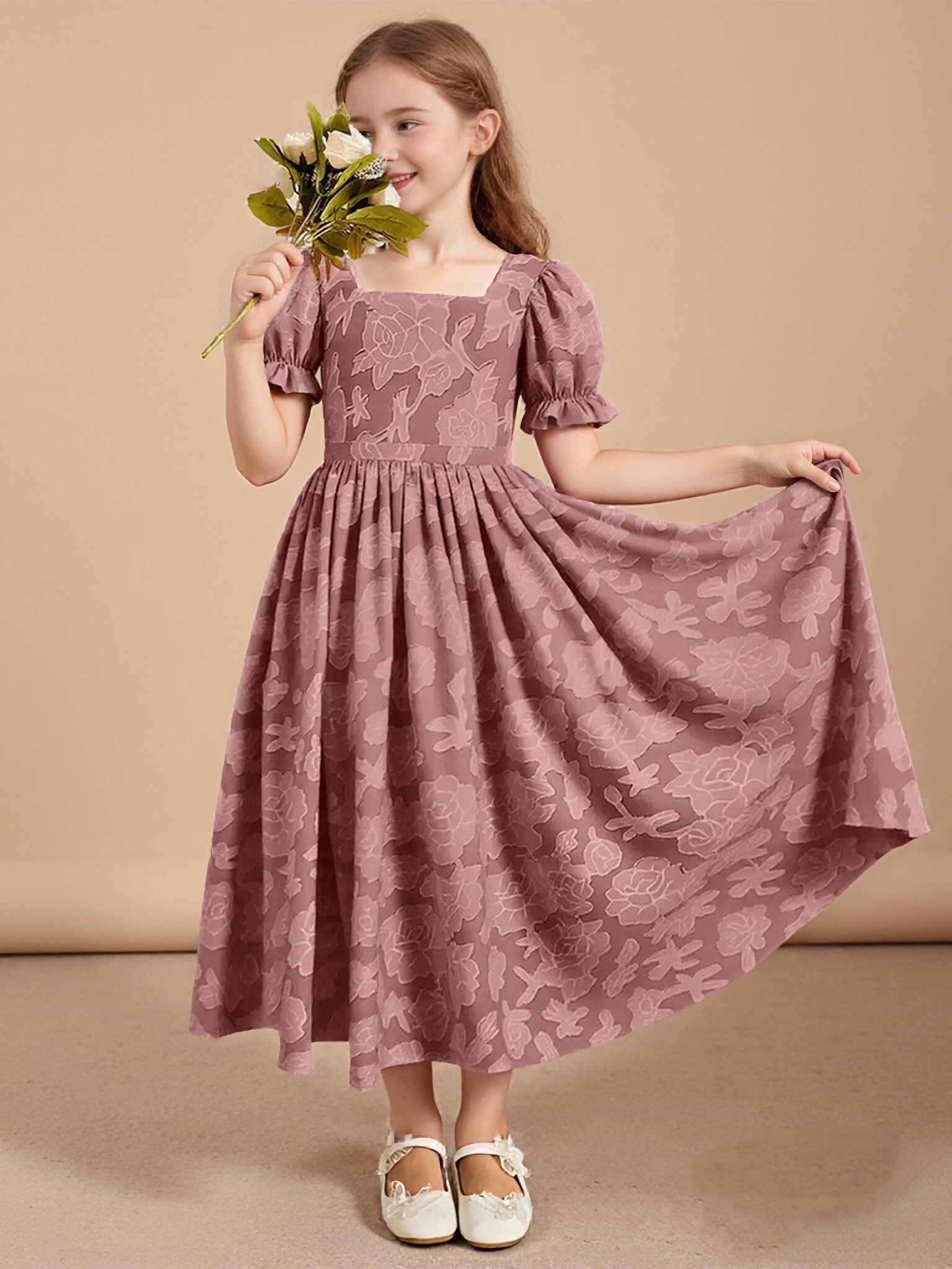 - Joss is our lovely flower girl dress crafted from floral burnout fabric. This dress is not only perfect for a flower girl at a wedding but also versatile enough for other special occasions.