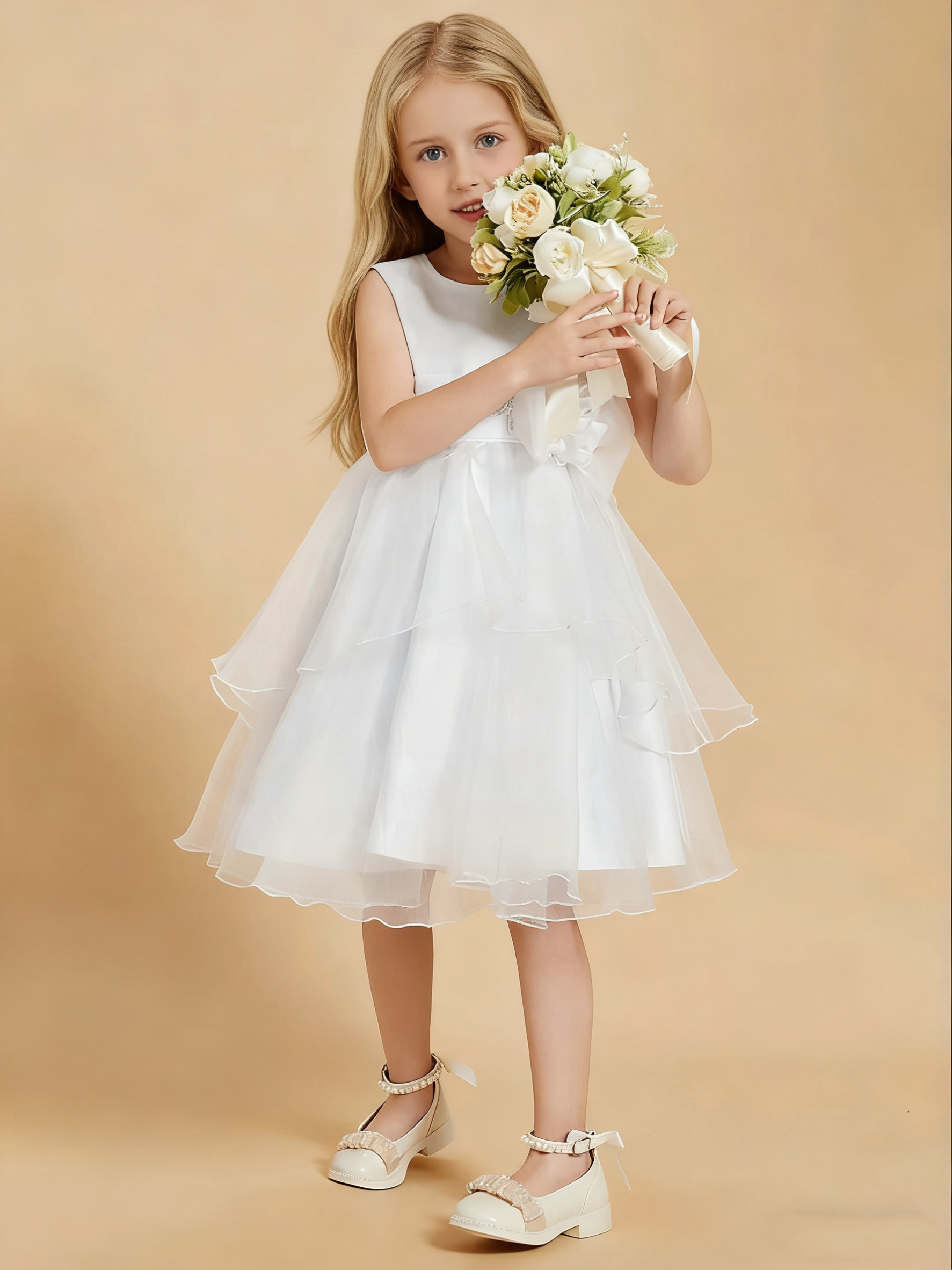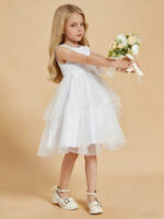 • Make your little flower girl shine with our adorable Flower Girl Dresses. These knee-length dresses are designed with charming bowknot accents, adding a touch of sweetness to her ensemble. Whether it’s a wedding or any other special occasion, these dresses will ensure your flower girl looks absolutely delightful. The combination of the knee-length design and cute bowknot details makes these dresses a perfect choice for a youthful and charming look. Let her steal the show in style and comfort with these lovely dresses.