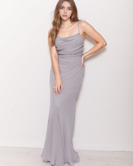 The perfect dress for any occasion. Wear it as a bridesmaid and wear again and again our Alycia dress will always see you as best dressed. We love it so much that we make it in both soft chiffon and sensuous satin. Fabulous cross detail halter neck and high back this slim column dress is cut on the bias and beautifully skims the body. Available in sizes US2(UK6) to US18(UK22). Colours available in stock and full colour palette available to order.