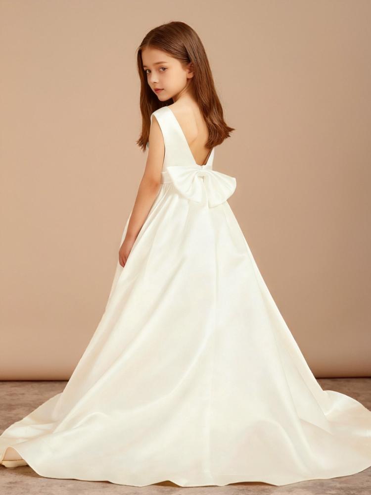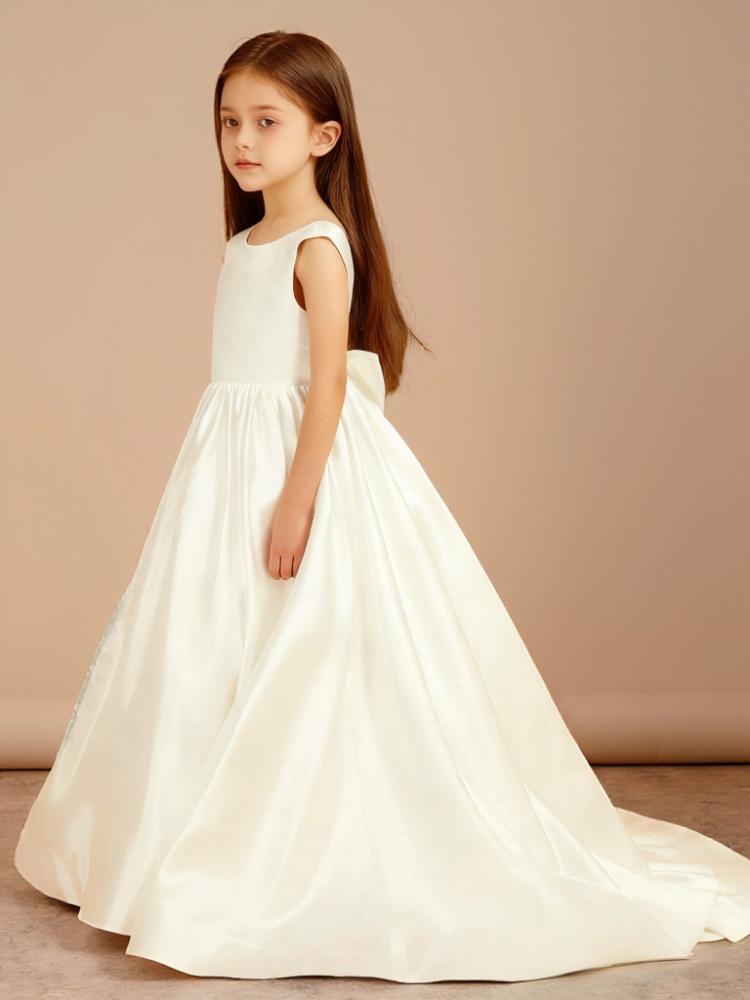 Bow Satin Sweep Train Flower Girl Dress