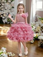Girl’s 3D Rose Princess Dress – Multi-Layer Mesh, Flower Girl/Wedding