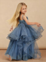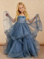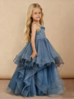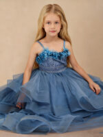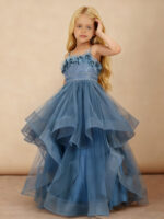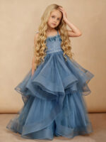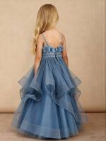 Floral Applique Tiered Tulle Long Flower Girl Dress