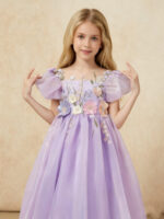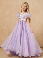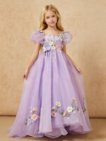 Be the first to review “Floral Appliqued Illusion Neck Cap Sleeve Girls Dresses”