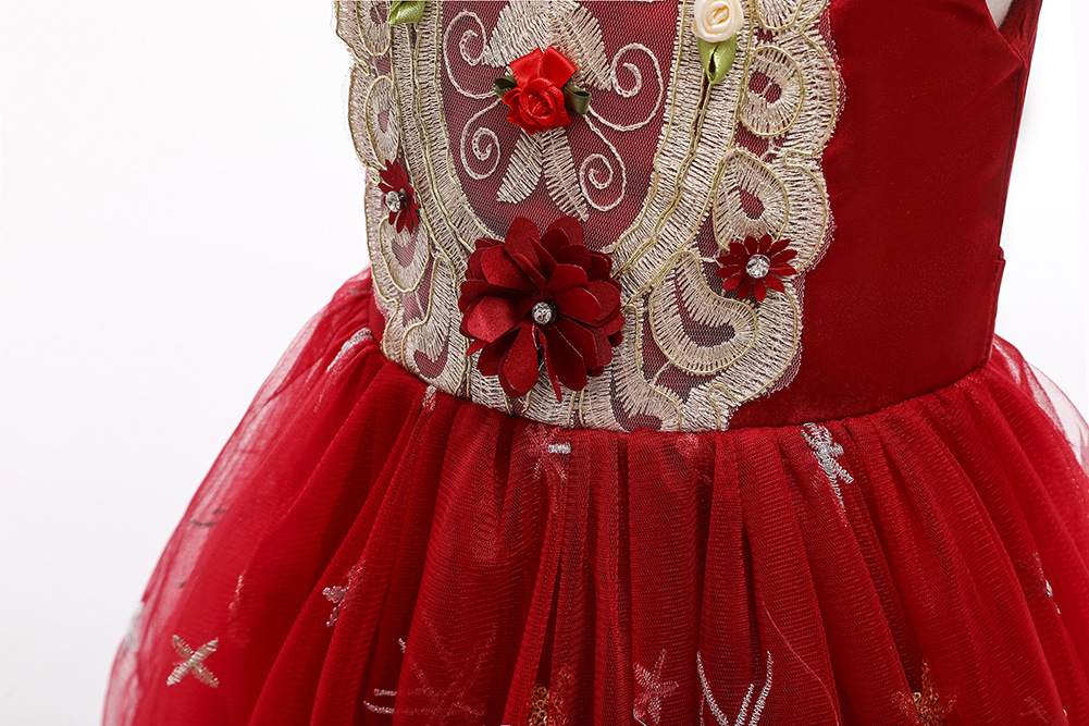 Girl’s 3D Rose Princess Dress – Multi-Layer Mesh, Flower Girl/Wedding