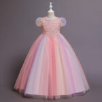 Available in lovely colors like pink, blue, rainbow – hued, and purple, there’s a shade for every little dreamer. Each hue pops beautifully against the tulle skirt, making the gown even more eye – catching and perfect for creating magical memories 🎉.