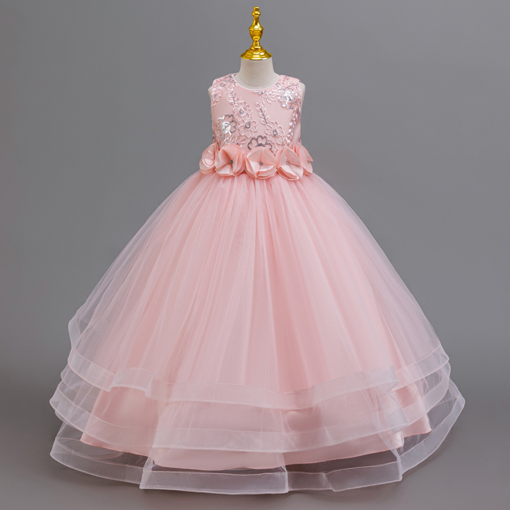 Trade Children’S Dress Princess Long Skirt Spot Christmas Red Girl Show Costume Embroidered Children’S Dress Dress