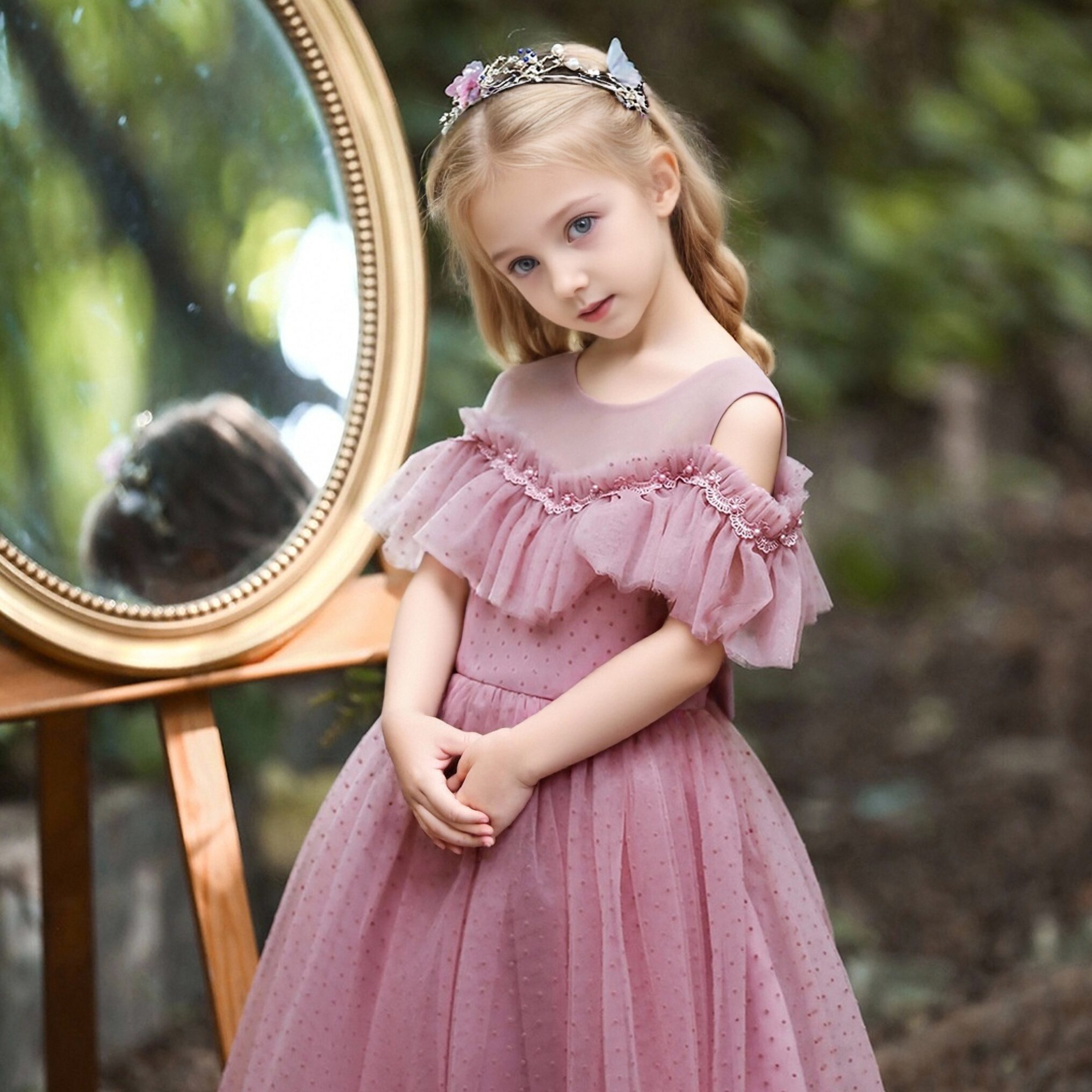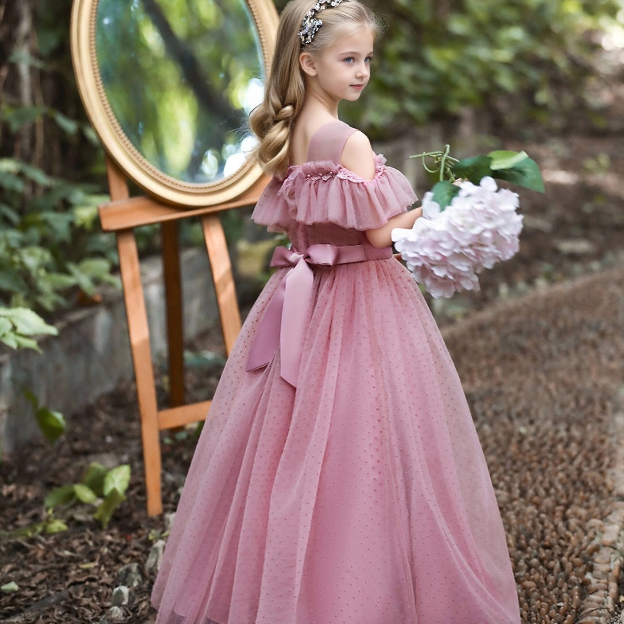 With its classic princess silhouette, the gown hugs just right to highlight a sweet shape, while the ruffles cascade beautifully, creating a look fit for a royal ball 🎀. Whether it’s a birthday party or a special event, this gown turns your kid into the star, radiating confidence and joy.