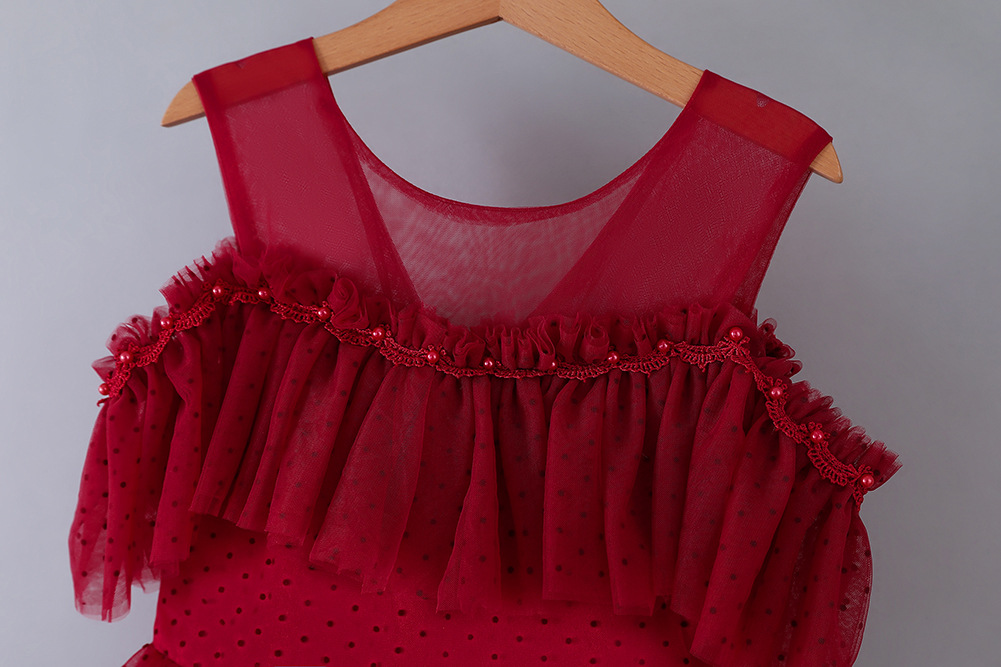 Girls’ Mesh Polka Dot Princess Dress – Sling, Small Host Style