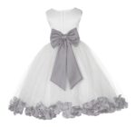 Ivory Elegant Wedding Pageant Special Events Petals Flower Girl Dress with Bow Tie Sash 302T(4)