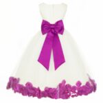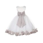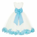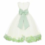 Ivory Elegant Wedding Pageant Special Events Petals Flower Girl Dress with Bow Tie Sash 302T(6)