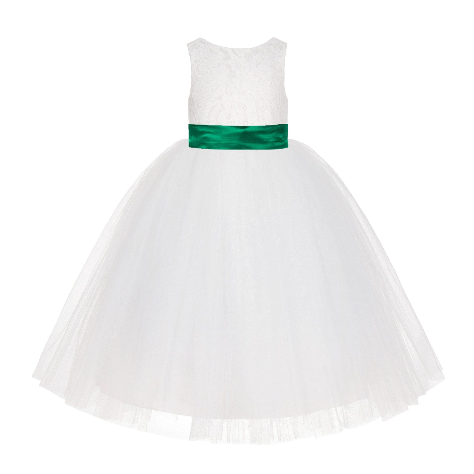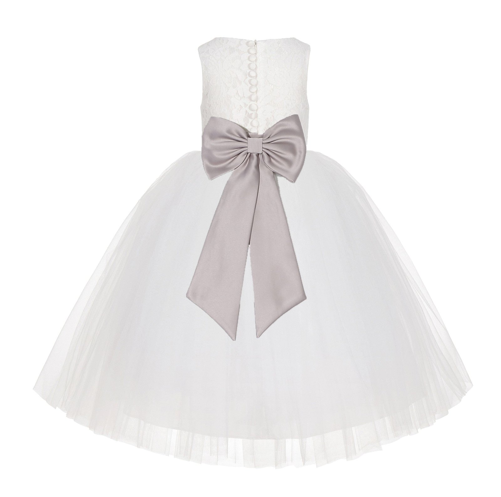 Ivory Floral Lace Flower Girl Dress Special Events Christening Pageant Gown Communion Recital LG7(4)