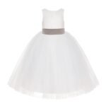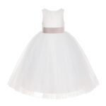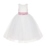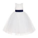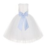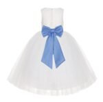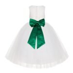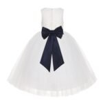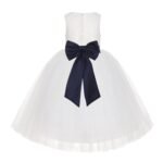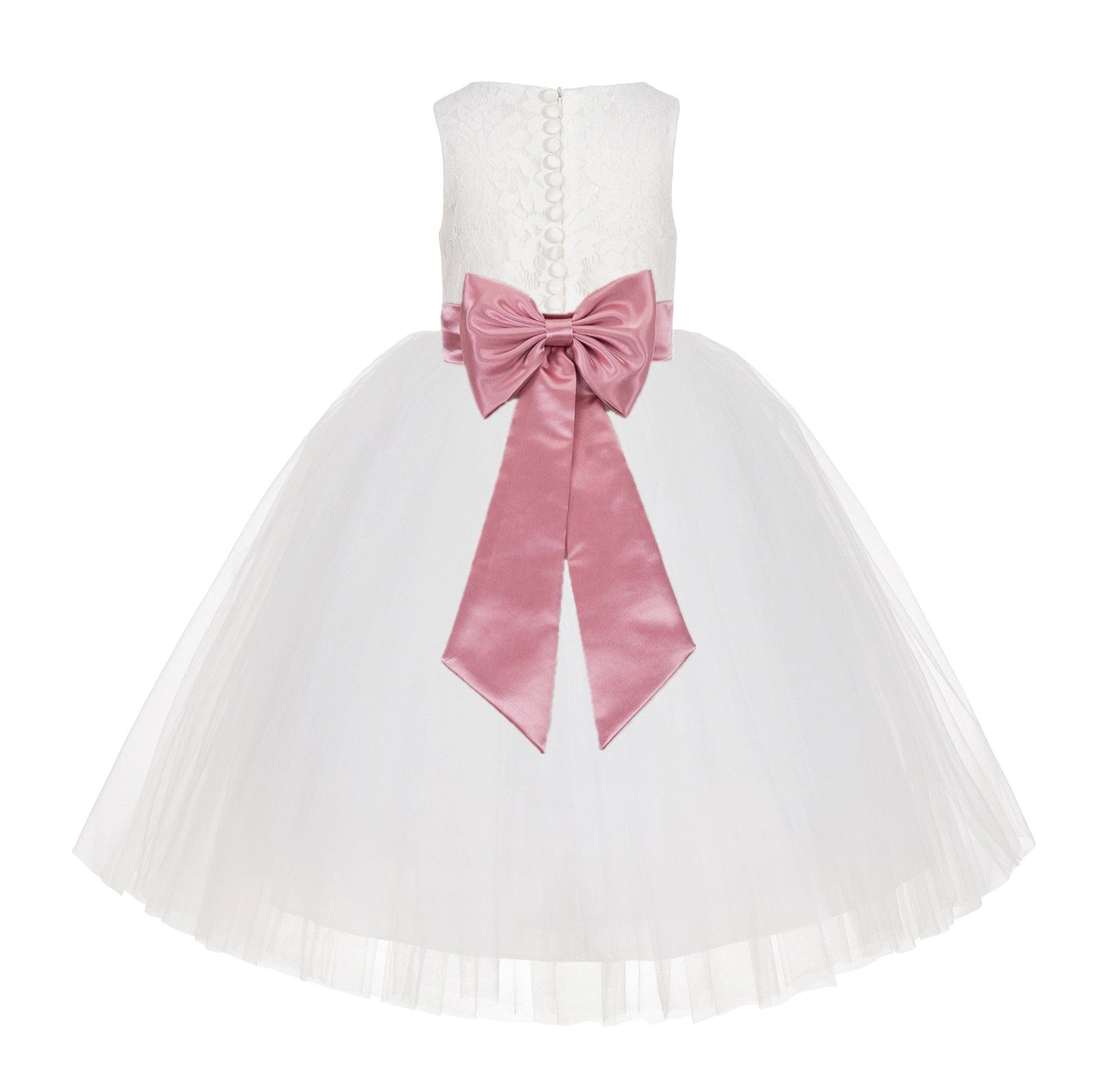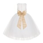 Ivory Elegant Wedding Pageant Special Events Petals Flower Girl Dress with Bow Tie Sash 302T(6)