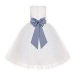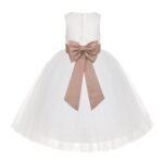 Ivory Elegant Wedding Pageant Special Events Petals Flower Girl Dress with Bow Tie Sash 302T(5)