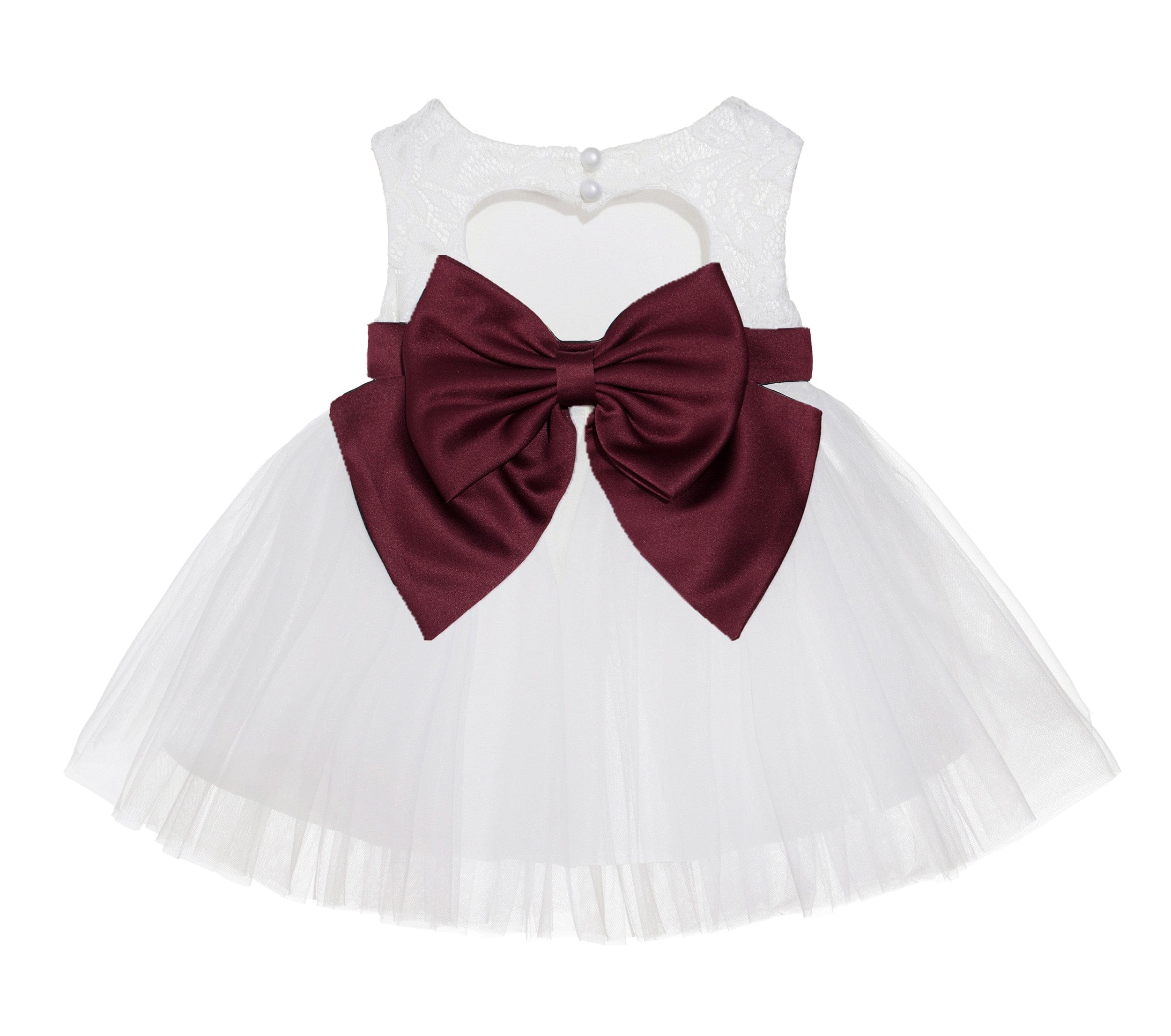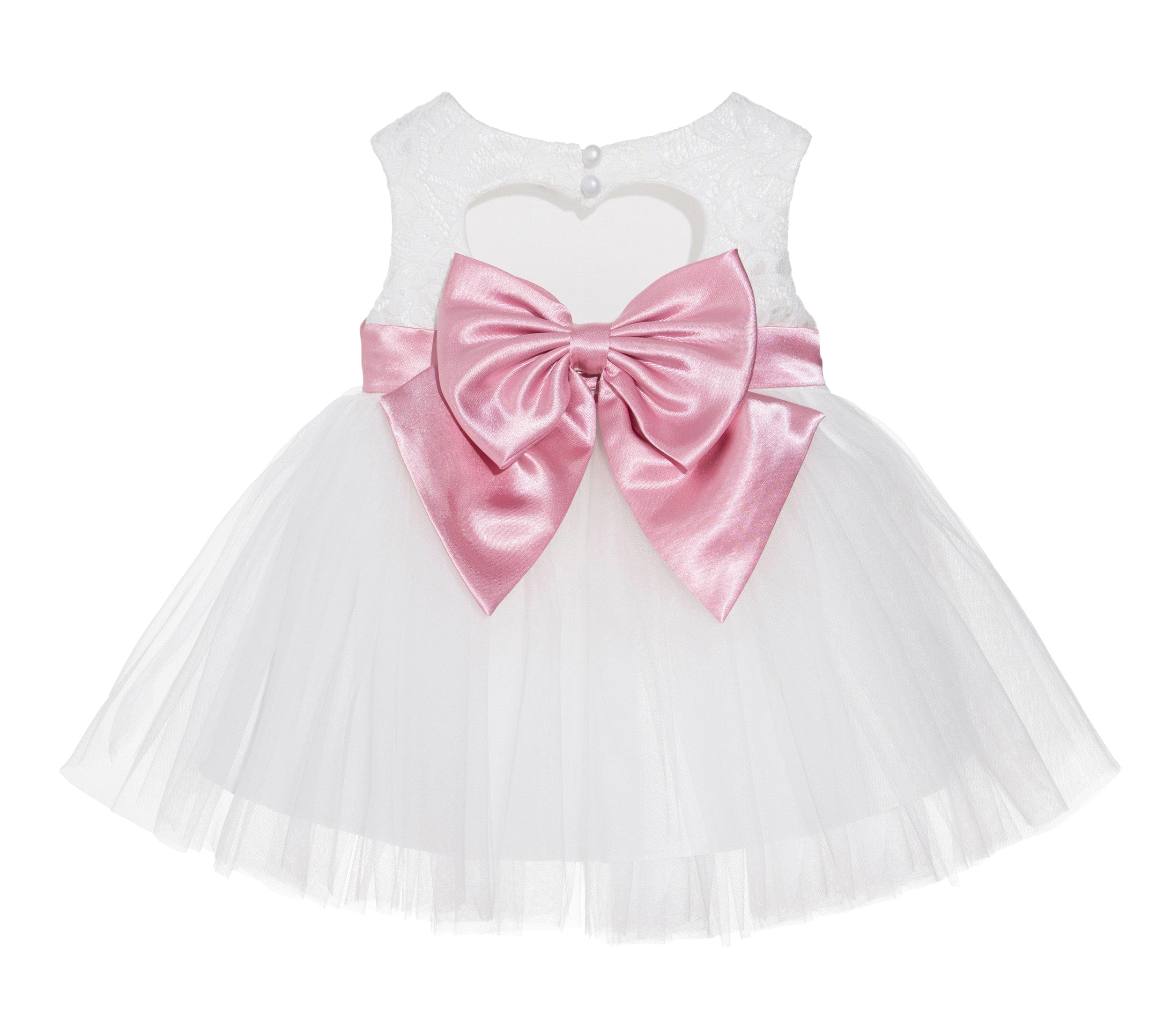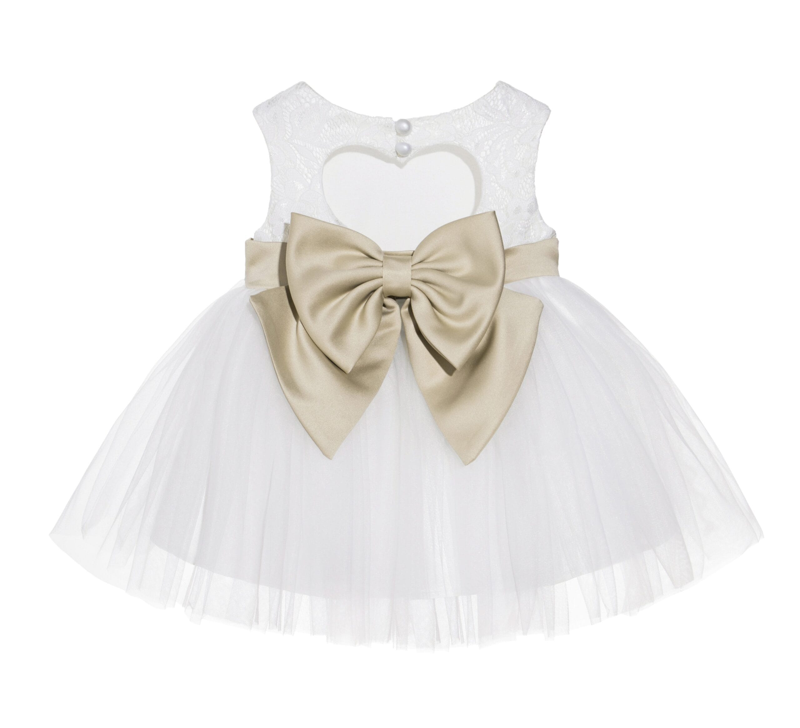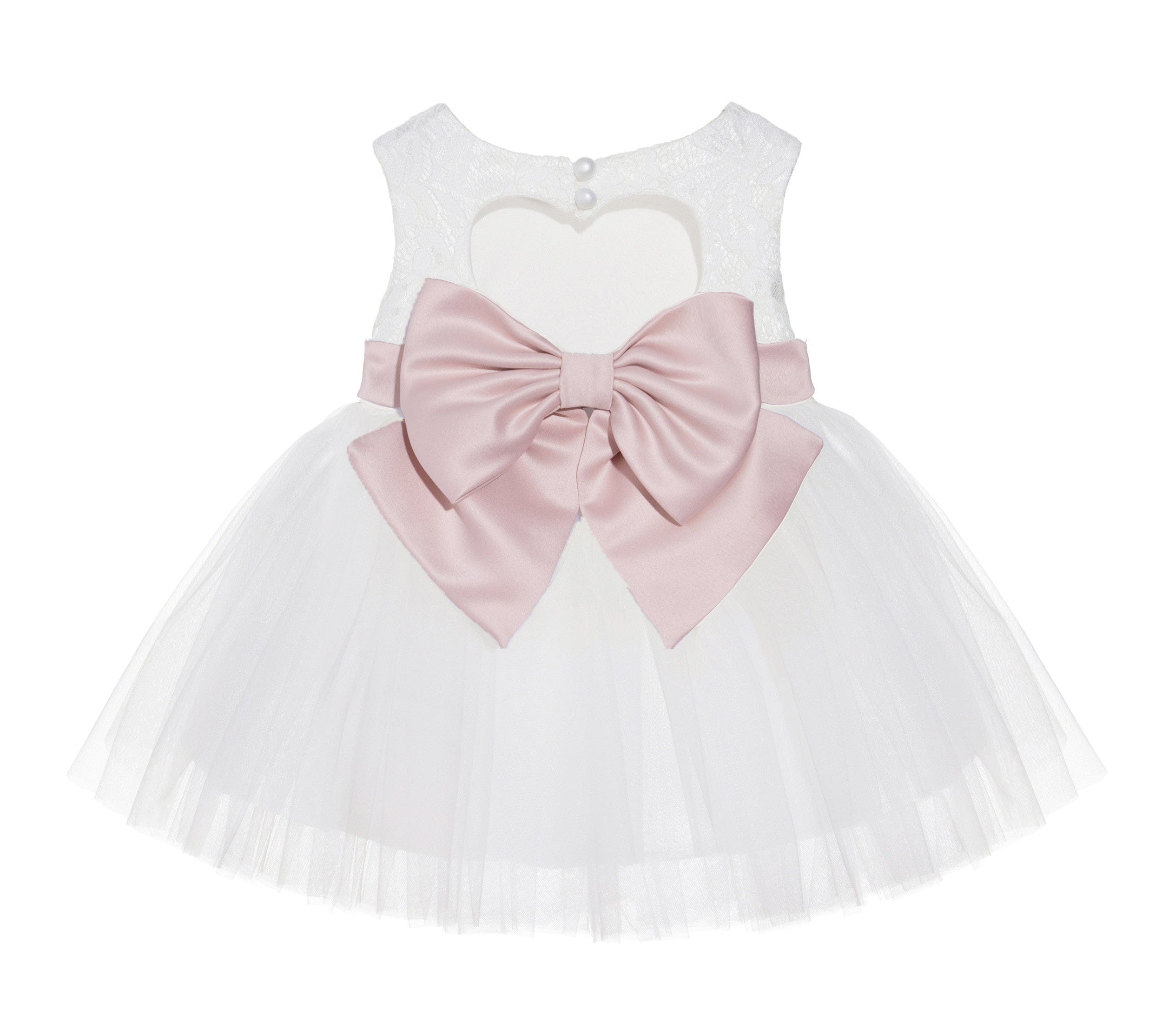 Ivory Lace Heart Cutout Junior Flower Girl Dress Mini Bride Wedding Reception Communion Baptism BB1