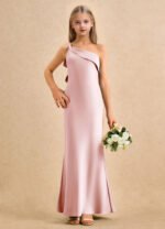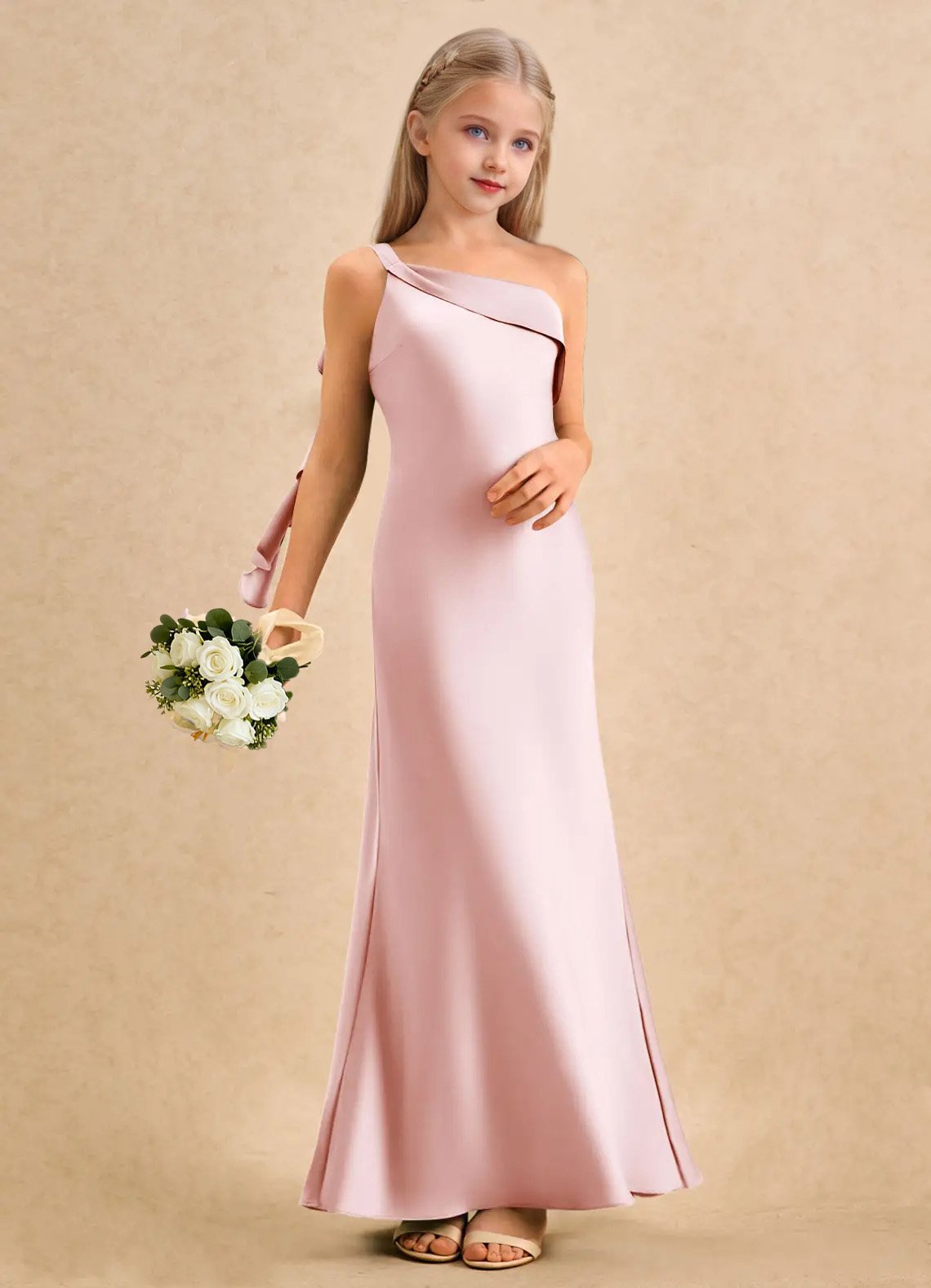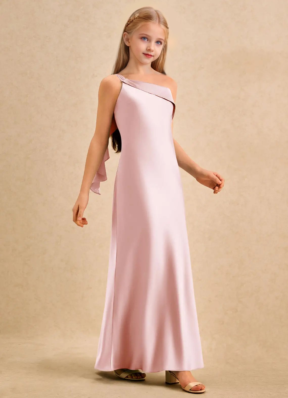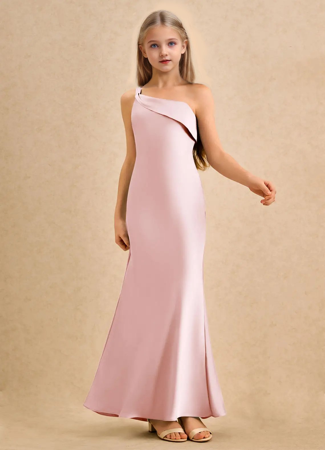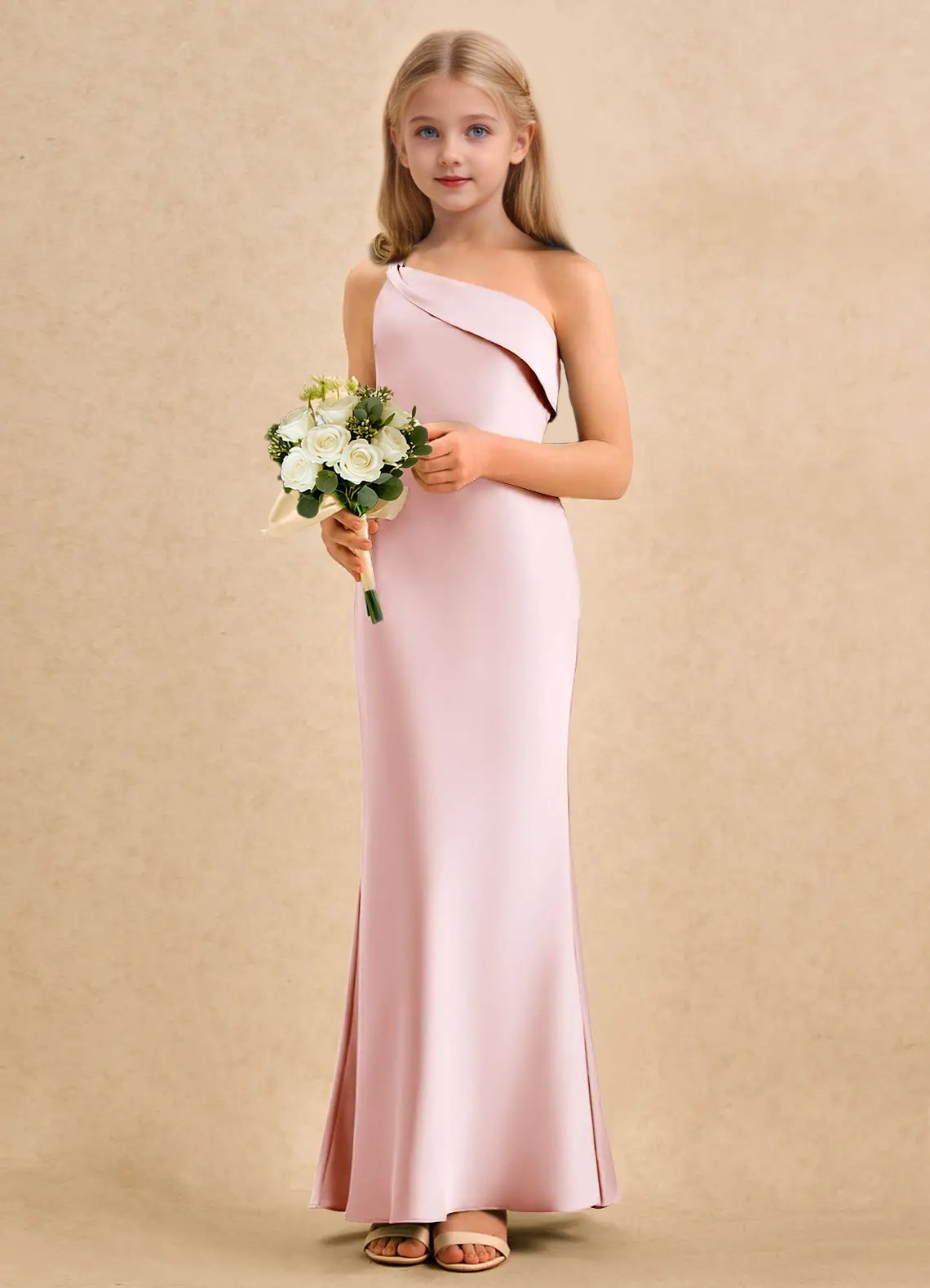 Jirocum Almond Junior Bridesmaid Dresses Sheath One Shoulder Stretch Satin Dress