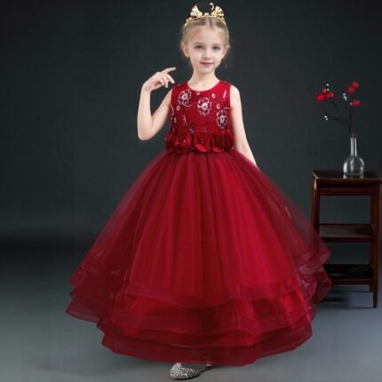 Girl’s 3D Rose Princess Dress – Multi-Layer Mesh, Flower Girl/Wedding